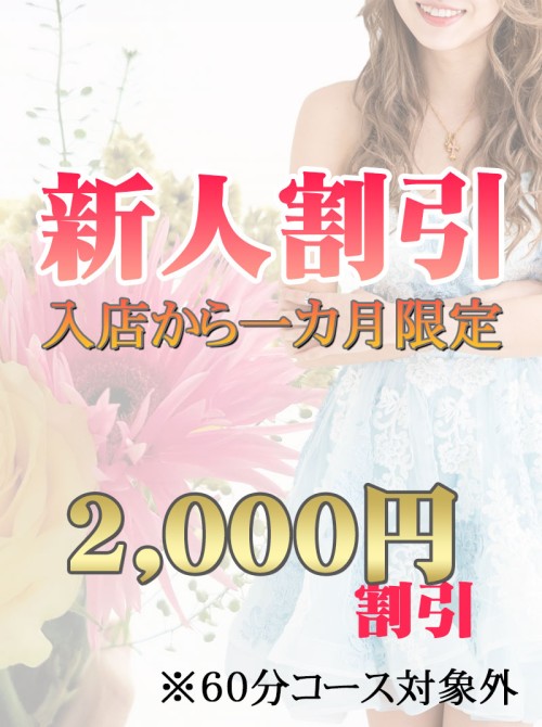 入店より一か月の間、2,000円割引となります。